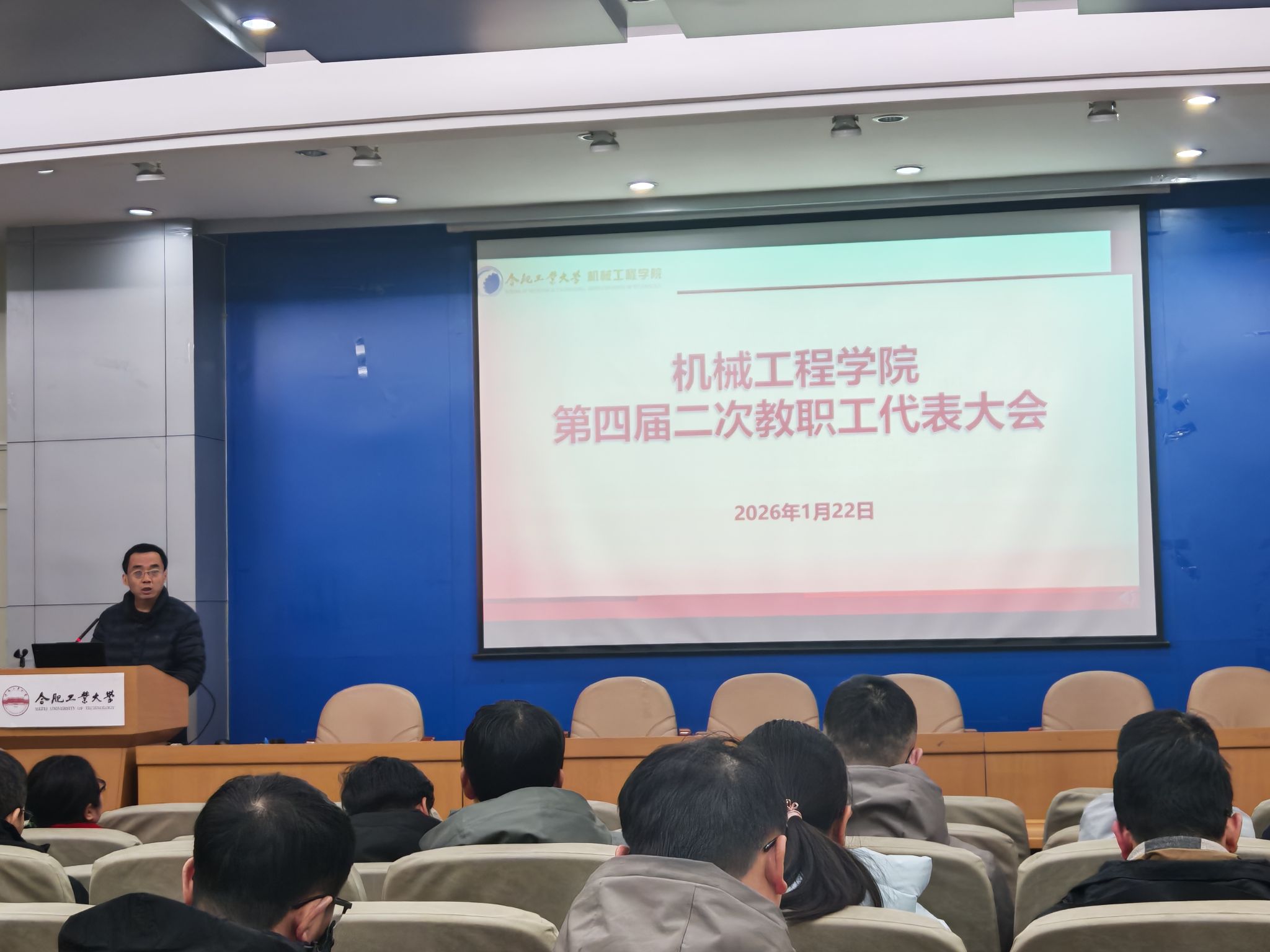 为充分发挥教职工代表大会的民主管理和监督职能,助力学院事业高质量发展,1月22日下午,av麻豆第四届教职工代表大会第二次会议在格物楼214报告厅隆重召开。学院领导班子成员、正式代表出席会议,会议由祖磊书记主持。