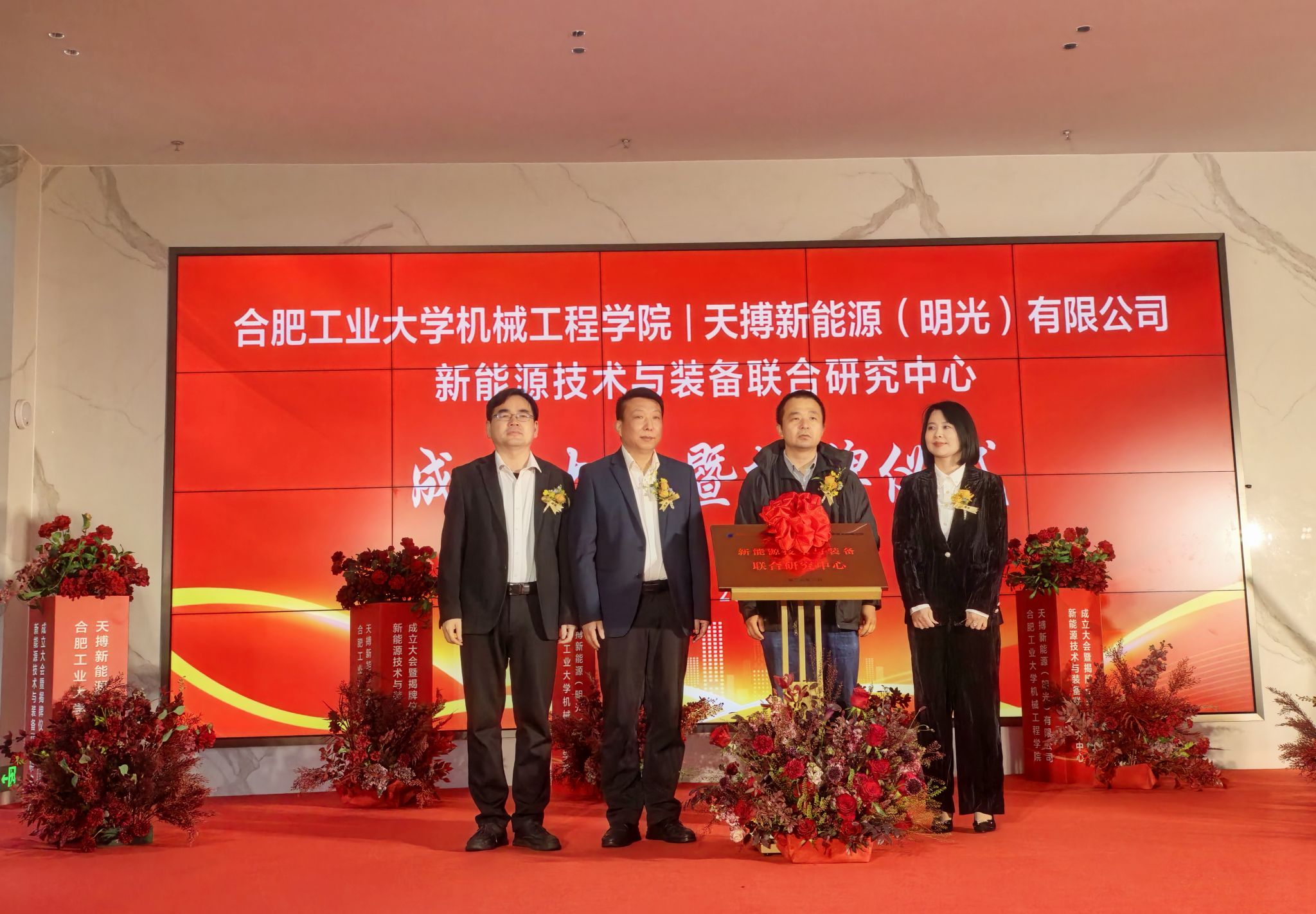 朱其昊、岳峰、马培勇、黄娜共同为 “新能源技术与装备联合研究中心” 揭牌,并与各位领导、嘉宾合影留念。